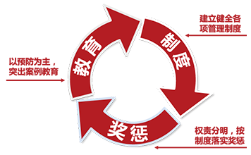 企业实训基地在学生安全管理方面采用“教育、制度、奖惩”、“突发事件处理中心”三位一体一中心的管理体系:
